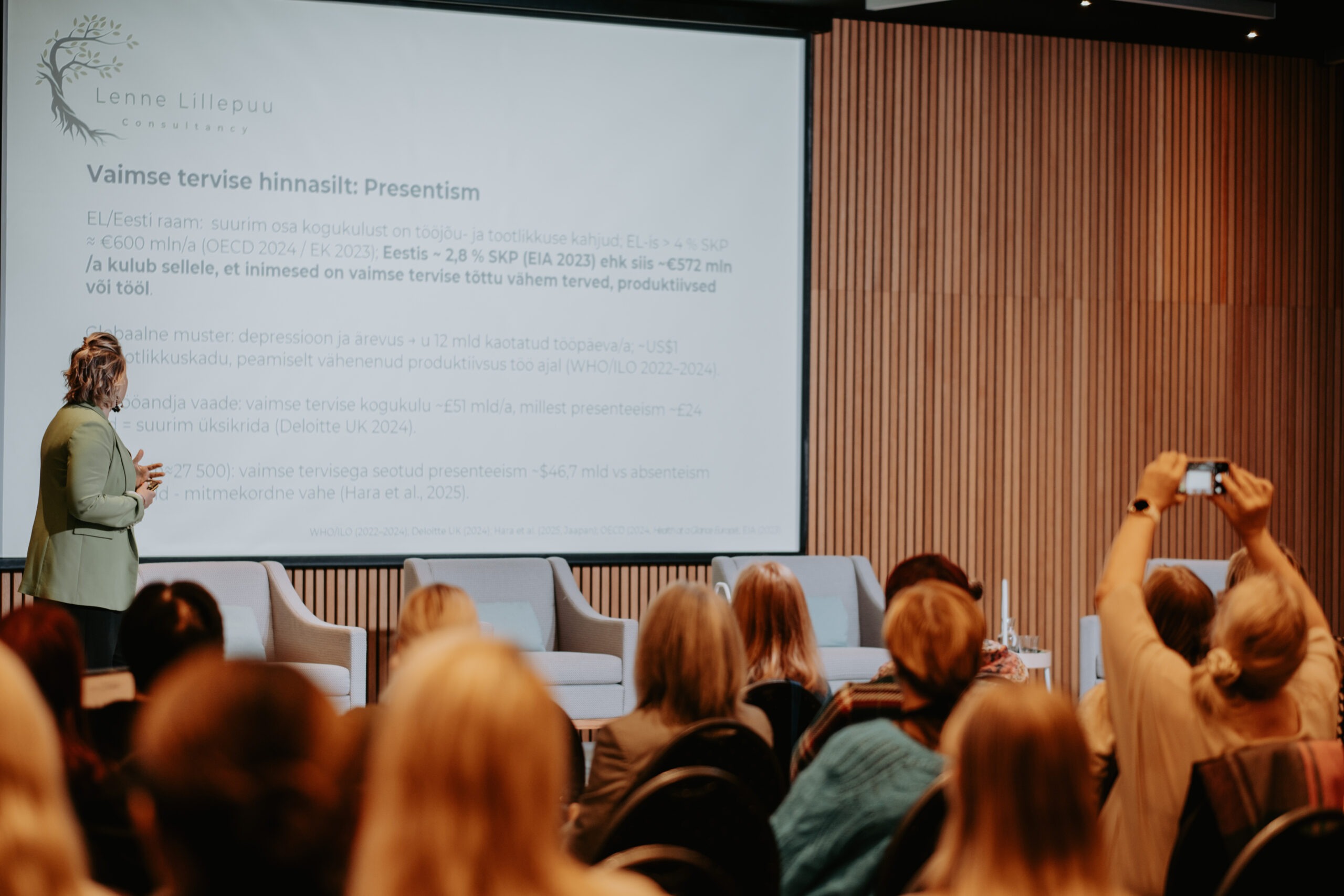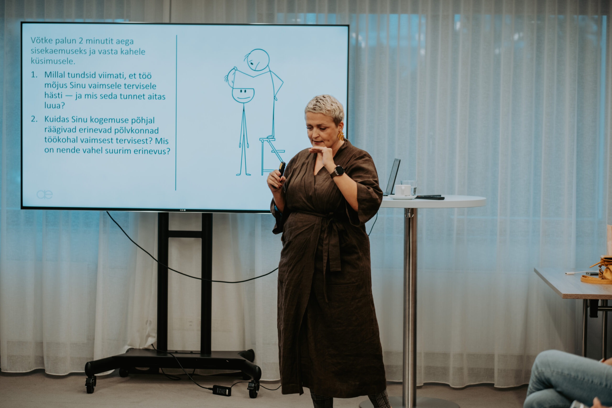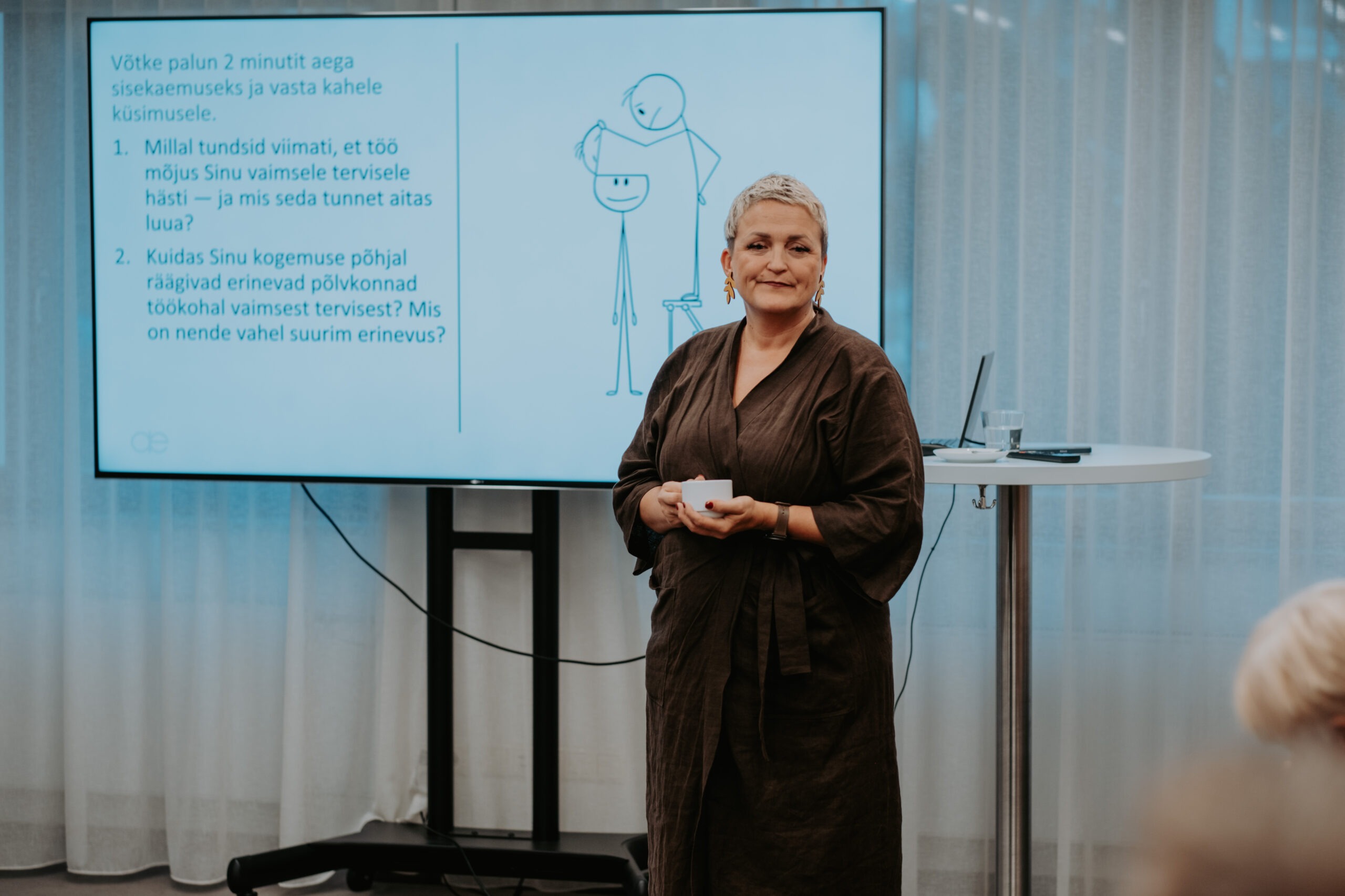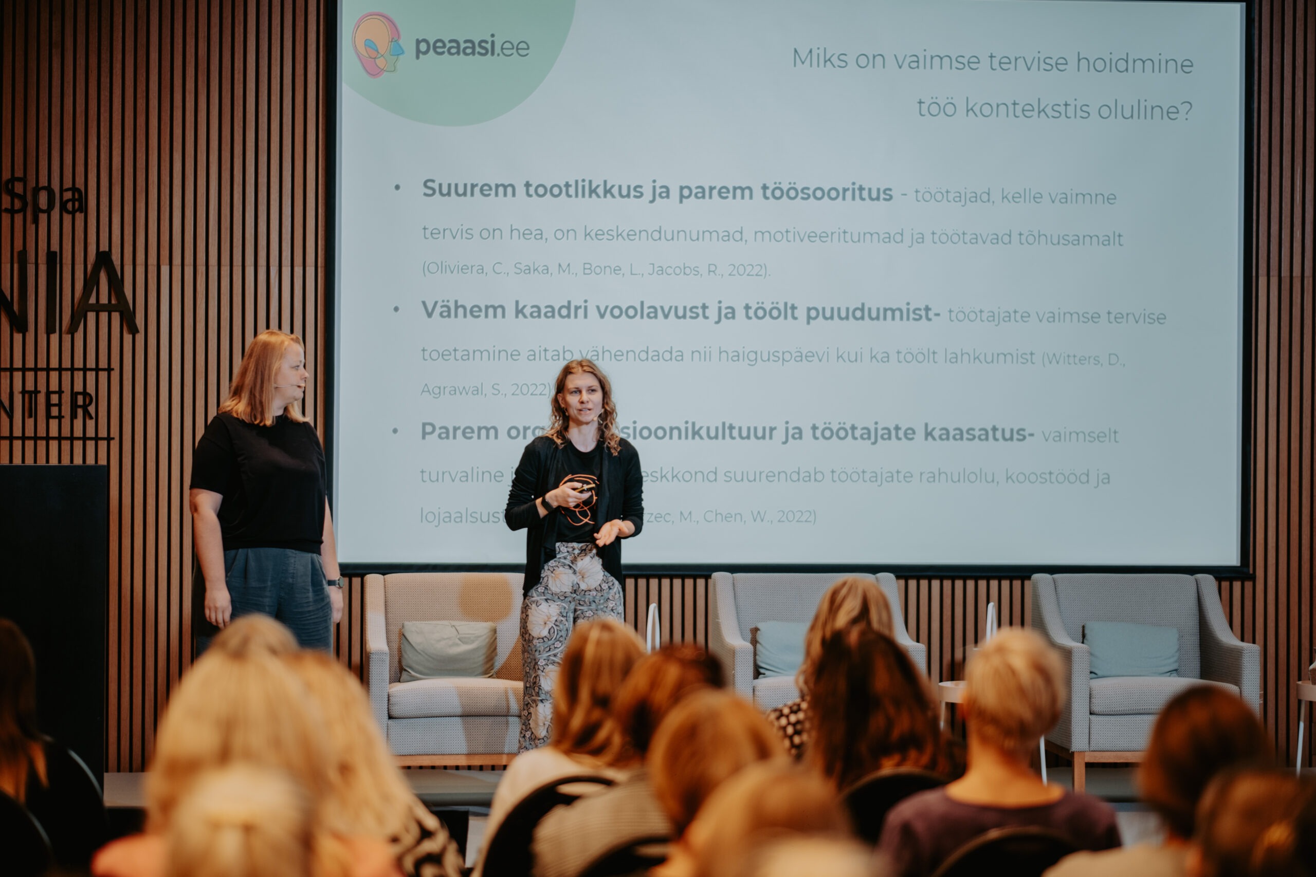 Pärnu kogemusest ja piirkondlikest suundadest kõneldi sessioonis „Salus Mentis Pernaviensis“, kus Diana Paulberg (Viv Living) tutvustas Pärnu elanike enesehoiupraktikaid, Elen Kihl (Sensus OÜ) rääkis vaimse tervise teenustest väljaspool töökohta ning Raine Pilli (Pärnu Haigla) jagas teadmisi Pärnumaa töötajate tööheaolu hetkeseisust.
